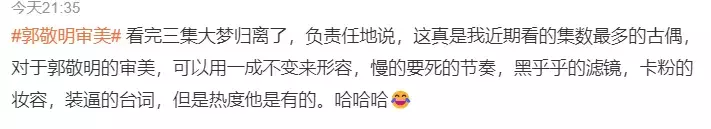 也有网友说,仍是郭敬明的立场,节律慢,滤镜黑,卡粉妆,装13的台词……关联词固然问题流弊不少,关联词东谈主家热度也不低。