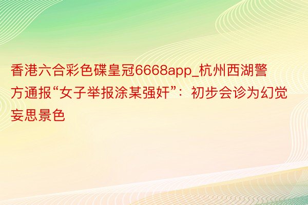 香港六合彩色碟皇冠6668app_杭州西湖警方通报“女子举报涂某强奸”:初步会诊为幻觉妄思景色
